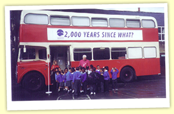 In 1997, the bus passed to Associated Bus Ministries who employed it on a Church of England project celebrating the Millennium. It visited schools in London to help pupils consider the true significance of the Millennium. It was refitted inside and had posters on the outside asking the important question ‘2000 years since what?’