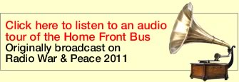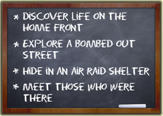 Home Front Bus is a unique Living History Experience contained within a classic double deck bus. Detailed reconstructions of a 1940’s Living Room, Shop, Bombed out Street and Air Raid Shelter, containing period features and artefacts replicate the sights, sounds and smells of the Home Front providing an exciting and inspiring educational experience for schools and events.
